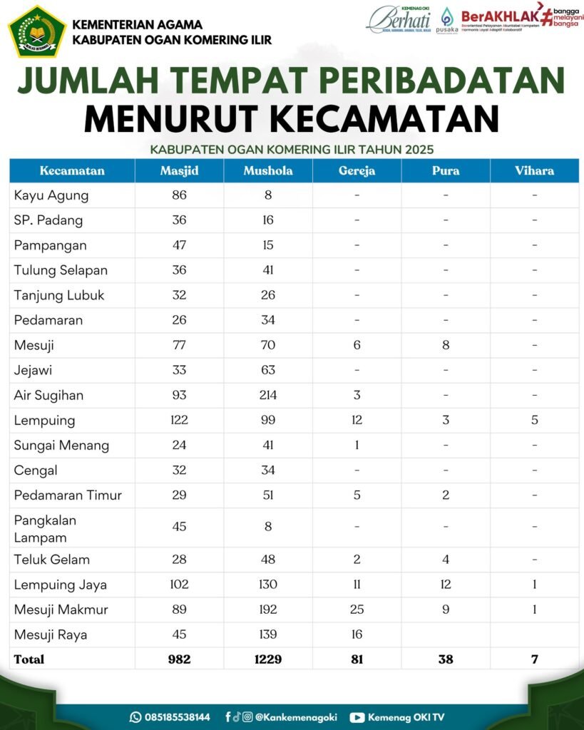 Jumlah Tempat Peribadatan Menurut Kecamatan