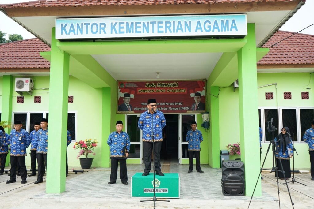 Kayuagung — Kantor Kementerian Agama Kabupaten Ogan Komering Ilir (OKI) menggelar Upacara Bulanan pada Rabu (17/09) di halaman Kantor Kemenag OKI. Bertindak sebagai Inspektur Upacara yaitu Kepala Kantor Kemenag OKI, H. Syarip, S.Ag., M.Pd.I.
