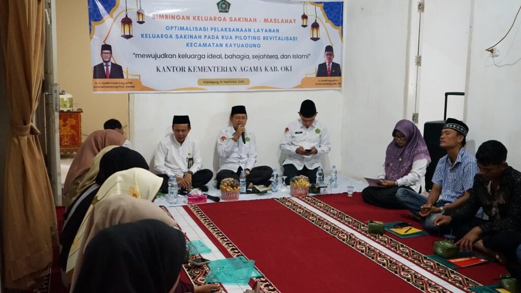 Kayuagung — Kantor Kementerian Agama (Kemenag) Kabupaten Ogan Komering Ilir (OKI) melalui Seksi Bimbingan Masyarakat (Bimas) Islam menyelenggarakan kegiatan Pembinaan Keluarga Sakinah di Aula KUA Kayuagung, Senin (30/09/2025). Acara ini dibuka secara resmi oleh Kepala Kemenag OKI yang diwakili Kasubbag TU, H. Muazni, sekaligus menyampaikan materi pokok kepada para peserta.